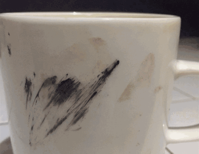 用洁牙粉对付积年污渍的白色陶瓷杯