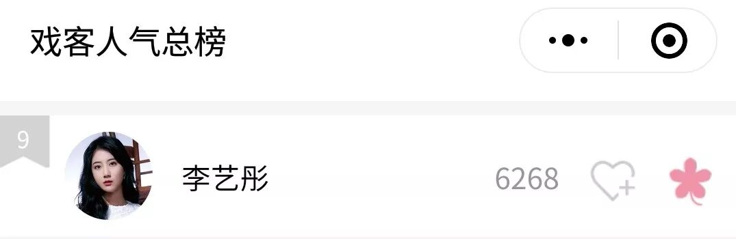 在戏客人气总榜中,李艺彤以6268朵花花(截止发稿前)稳坐人气女艺人TOP1!