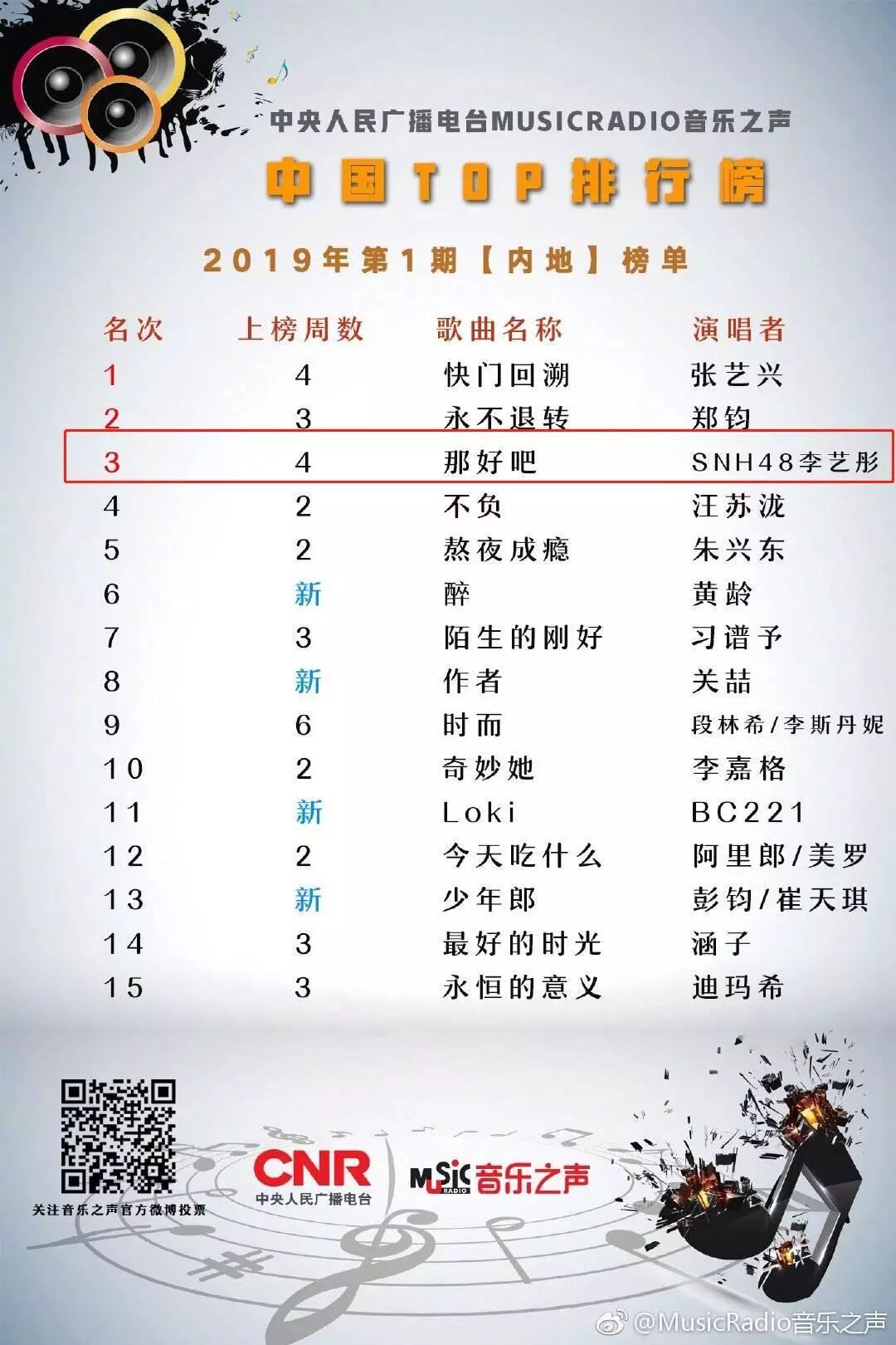 此外,《那好吧》更是傲居中央人民广播电台#MusicRadio中国TOP排行榜#2019年第一期内地榜单TOP3。