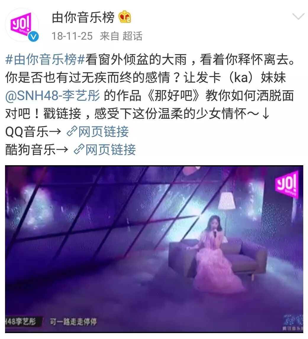 音乐新人李艺彤还成功登上了中国音乐公告牌和由你音乐榜的打歌舞台。