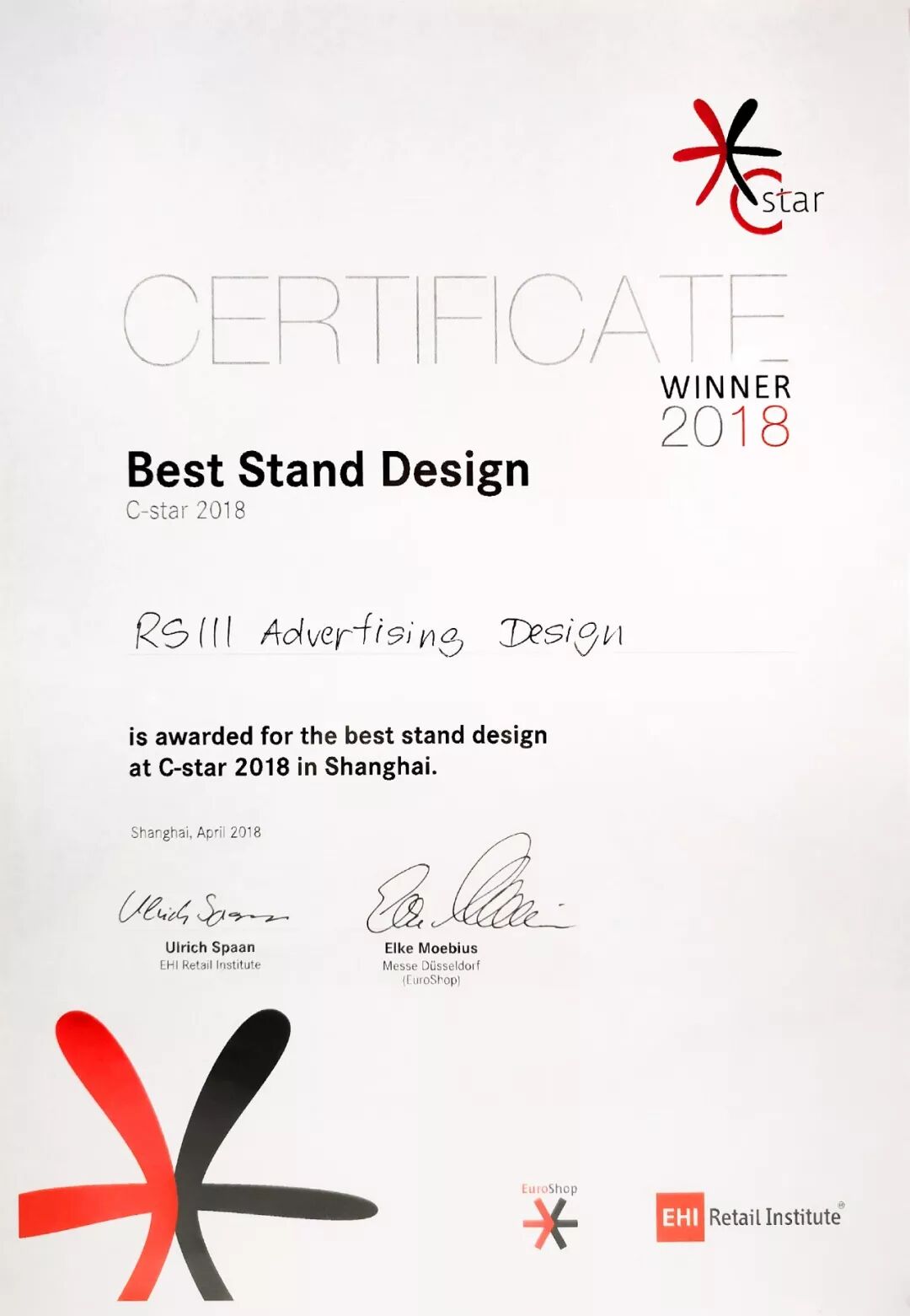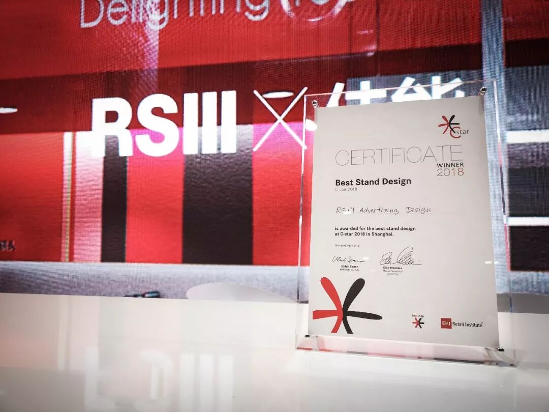 ▲4月26日,第四届C-star 上海国际零售业设计与设备展在上海新国际博览中心举行,瑞升作为零售商业空间专业设计公司参展,并荣获最佳展台设计大奖。