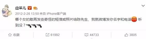 发现有女星发暧昧信息勾引陈小春,应采儿立即在微博上放狠话!