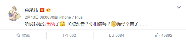 如此老公,应采儿也忍不住在微博吐槽:“可能真的是塑料夫妻情。”