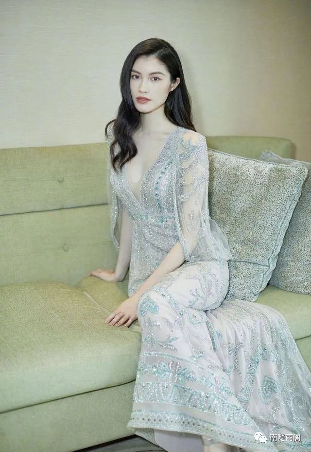 何穗的这条礼服裙上面最有设计感的就是花纹的样式,看起来很有中国风的味道,古典气息浓厚,仙气十足,就像水墨画里的美人一样,花纹也是十分精美的,何穗作为典型的东方脸,穿这样花纹的服装是非常适合的,不得不说何穗不愧叫"何仙姑",穿中国风长裙仙气飘飘,像画中走出来的人。