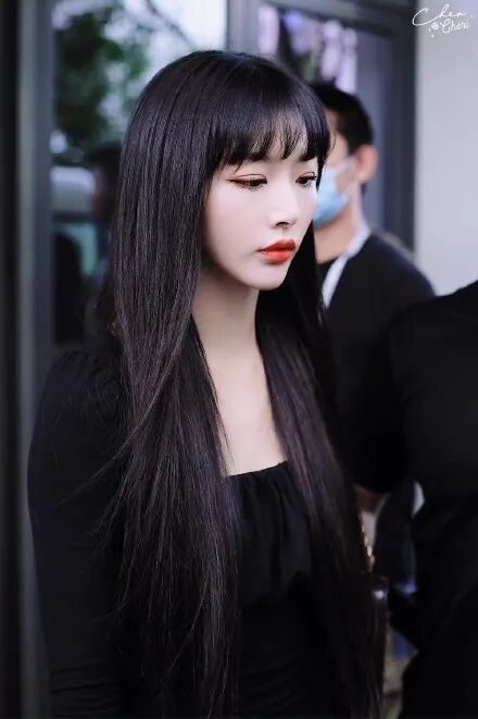 关于刘海,刘海有减龄遮盖发际线的效果,但是黑长直和刘海的搭配却没有那么和谐,自然的中分就是最好的选择。