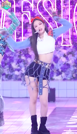热曲《Lovesick Girls》的初舞台更是燃爆全场,而JENNIE的黑长直造型更是超级加分。