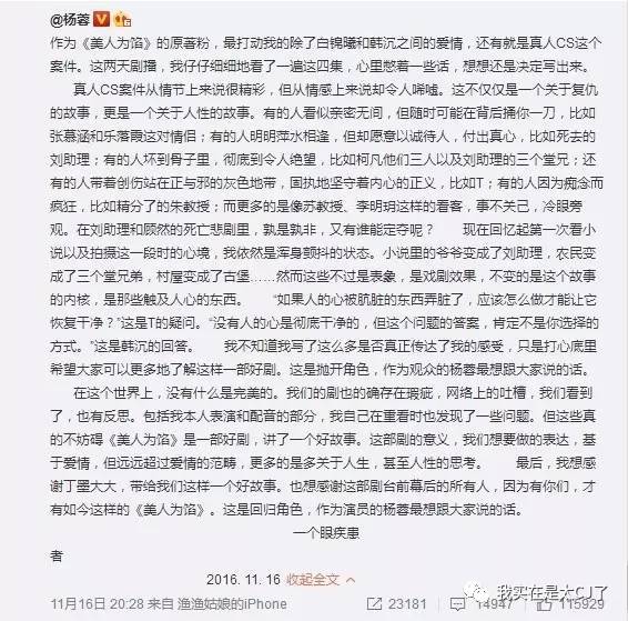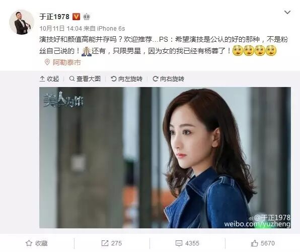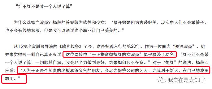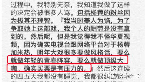 而讽刺的是,于正在解释的时候也确实把一部分原因归咎在了杨蓉的不红上面。