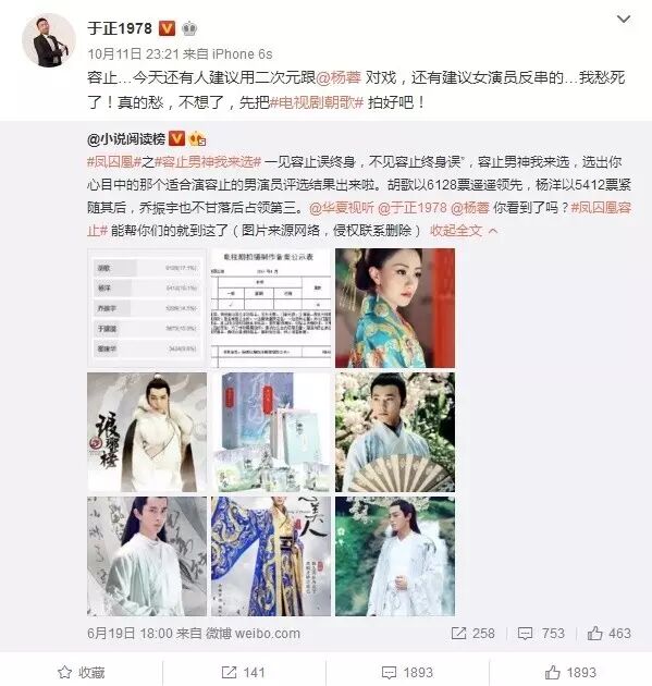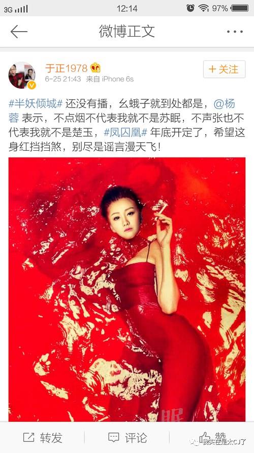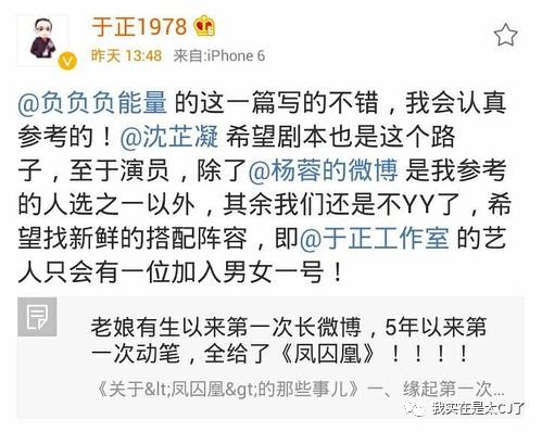 基本上杨蓉出演《凤囚凰》这件事是板上钉钉,粉丝给杨蓉P图,于正自己也转过这些图。