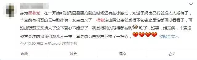 粉丝炸毛,因为美人如馅发布会的时候杨蓉哭了,可能就是因为换角事件。
