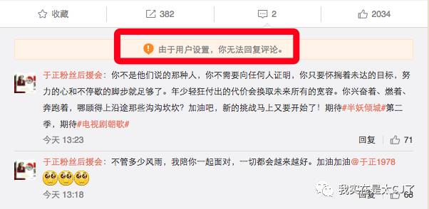 但是转头于正就把评论给关了。