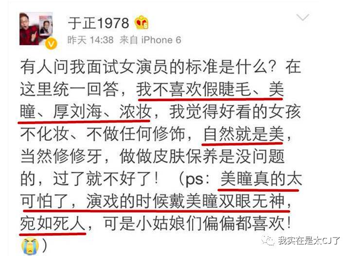 说试戏的女演员戴着美瞳像死人。