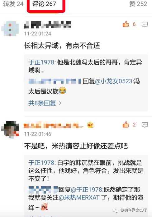 之前于正官宣了《凤囚凰》男主,是他自家的新人米热,没什么人讨论(转发才24,讨论才200多,真的糊了……