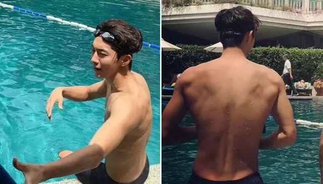 18日南柱赫透过SNS更新了在游泳池畔的照片。照片中他穿着泳裤,露出精壮的上半身,宽阔的肩膀和紧实的身材,吸引粉丝们的目光集中。