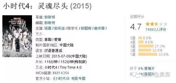 《小时代》系列4.8分、5.0分、4.4分、4.7分