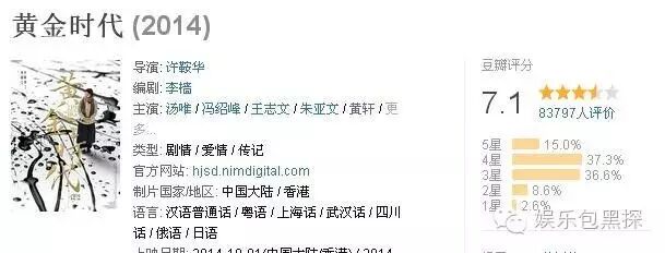 《黄金时代》7.1分 虽哭戏非常好,曾专门写过黄轩这部电影,但是配角不计算在内。