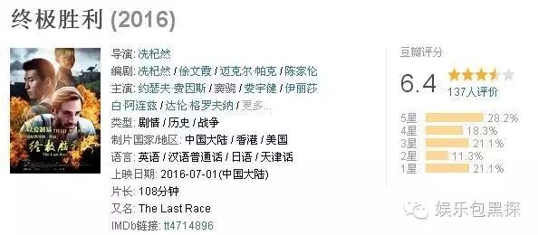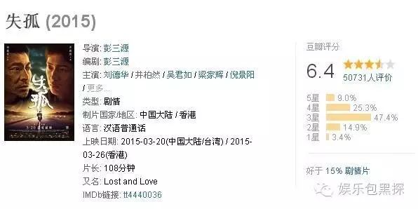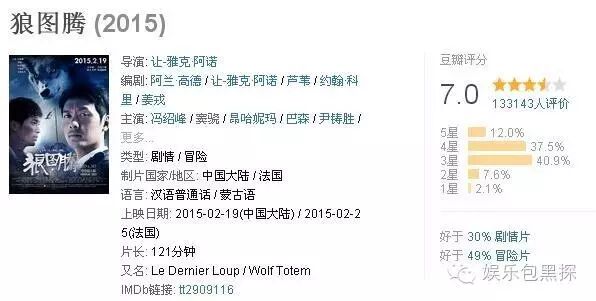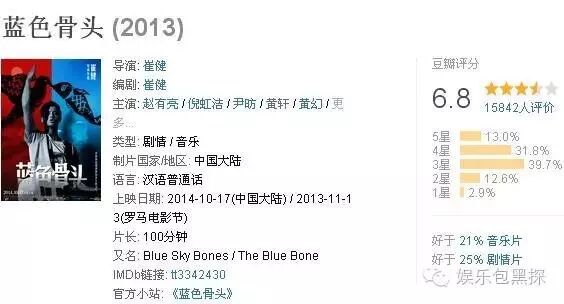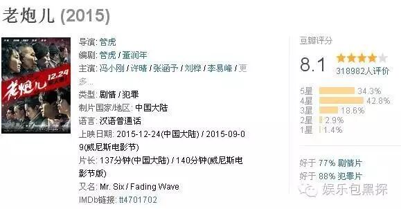 《老炮儿》8.1分 此片中吴亦凡、李易峰虽然是主角之一,但人物戏份、故事情节并非作为重点来展现。在电影宣传营销上两位鲜肉才是重点,故不能列入计算分数。