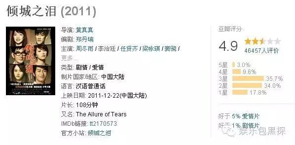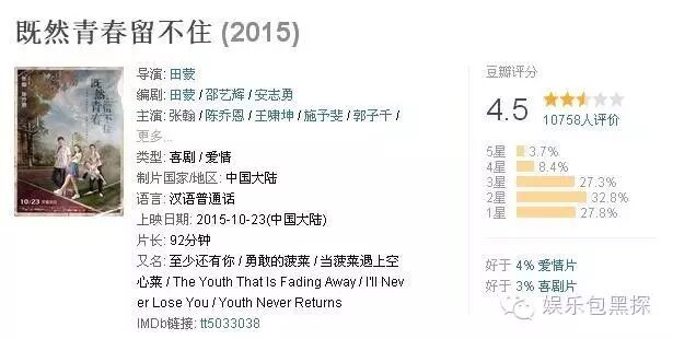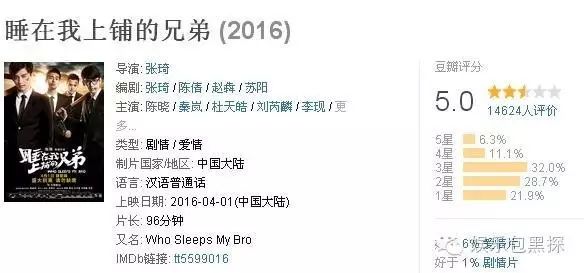 从豆瓣电影评分中,我们可以窥探出哪些小鲜肉更会选择好片?谁是烂片之王?而优秀的电影资源则更会让偶像们在日后有好的爆发力,也有良好的口碑效应。如果只顾着一味的圈钱,基本丧失艺术性,后果可想而知。