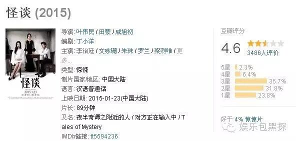 谁是单片主演分数最低的:马天宇《异度公寓》2.7分;张翰《无极限之危情速递》2.8分
