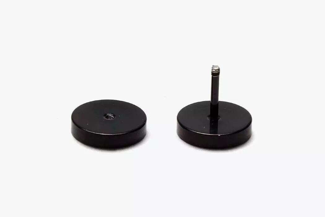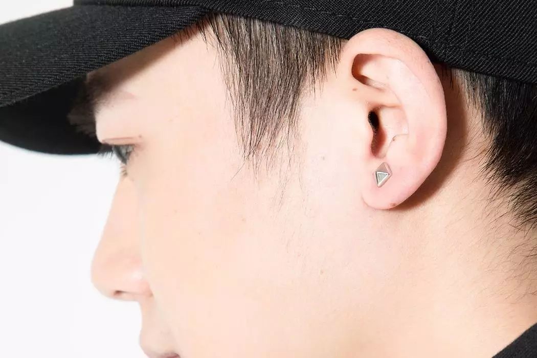 黑色的耳钉搭配能力较高,无论你是什么风格,黑色有质感的耳钉一定都能驾驭。香港潮流 icon 周柏豪经常佩戴这种款式的耳钉,黑色圆饼状,简约又酷感十足。