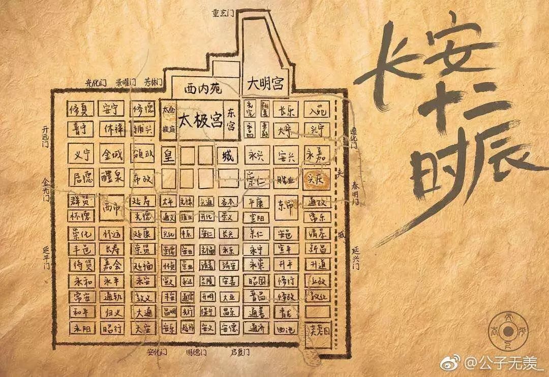 还记得《长安十二时辰》的实体书里直接随书附了一份详细的唐朝长安城布局图。