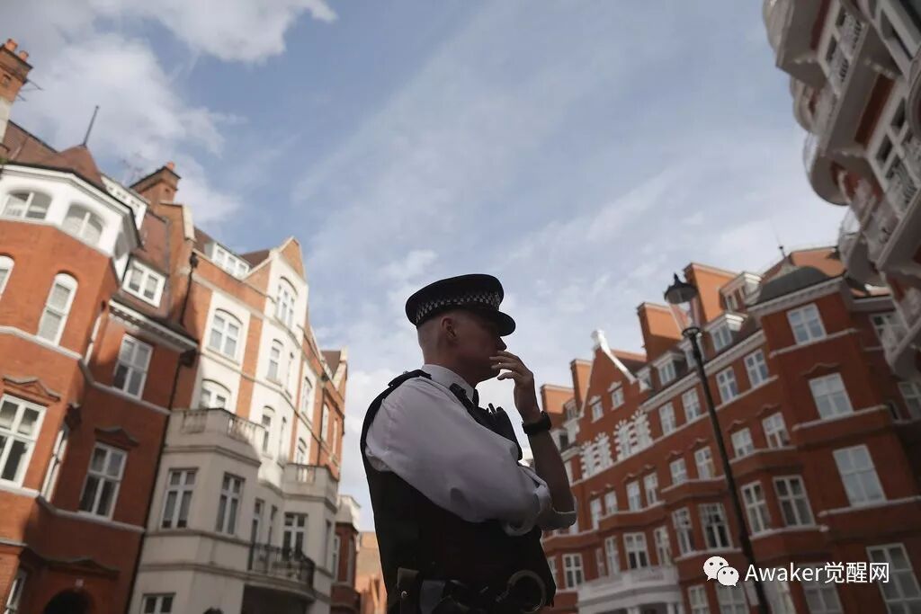 一名警官站在伦敦厄瓜多尔大使馆门口。