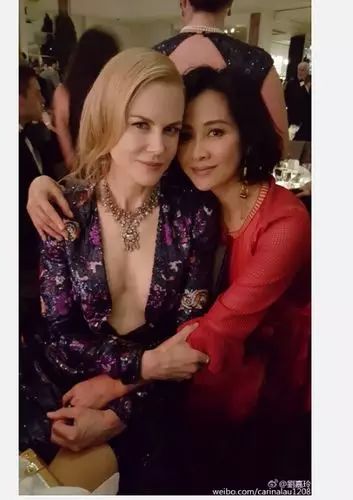 刘嘉玲通过微博晒出和妮可·基德曼的合影,并留言称:“拥抱女神!”