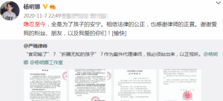 杨明娜直接把田亮告上了法庭,把所有与此有关的律师信都公布在网上。这使得网友们开始意识到,之前他们对杨明娜的误解。