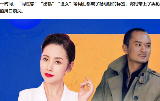 于是各种标签,比如同性恋,无情的母亲等都被强加在了杨明娜的头上,而杨明娜的沉默,也让田亮的态度更加猖獗。