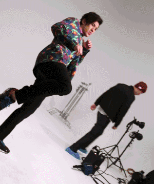 少年的世界向来色彩缤纷,印花西装与球鞋的搭配透着街头玩味,正如李治廷天马行空的音乐世界一般绚烂多彩,黑色的长裤让造型“冷静”下来,不会过于繁杂,也让上衣与球鞋有了更好的衔接。