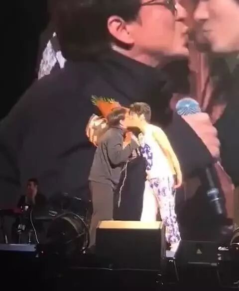 据说,成龙是在拍电影的空隙专程赶过来的,老友相见总是格外热情,现场的气氛也是很好。接下来,不可思议的事情发生了,两个人竟然当着上万粉丝的面直接亲了下去,你想想啊。那场面是得有多嗨。