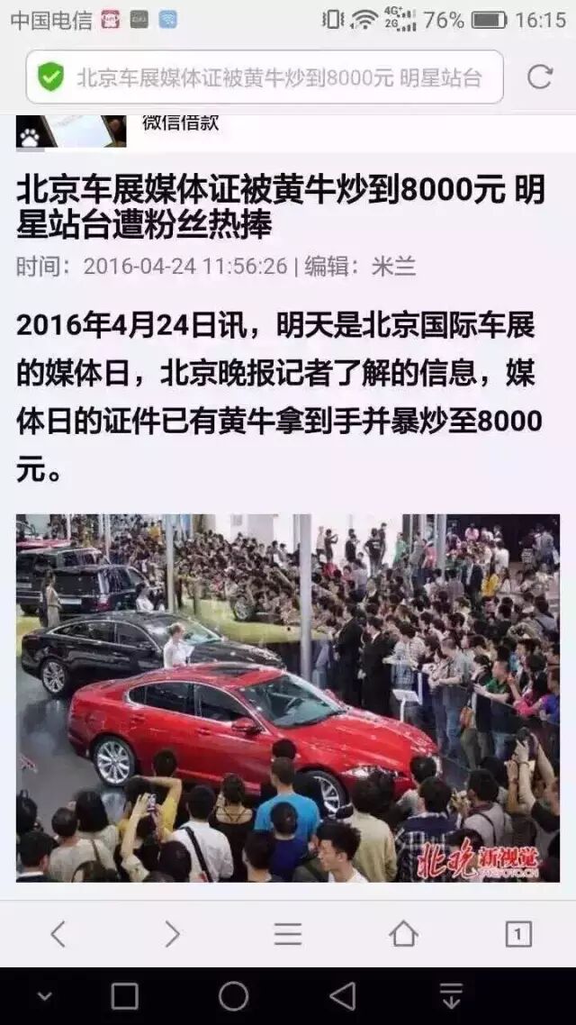今天,是一个让小编觉得有点激动的日子,因为有消息称4月25日2016北京国际车展的媒体日的证件被黄牛爆炒到8000元(小编从来没觉得媒体证这么值钱)。