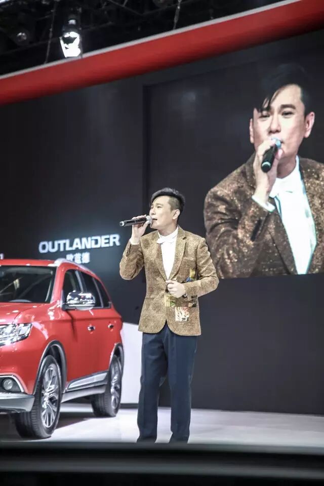 张信哲在广汽三菱展台现场《爱如潮水》。