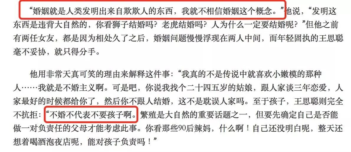 不过王思聪曾毫不避讳的提到,自己是不婚主义者,不过不排斥要孩子。