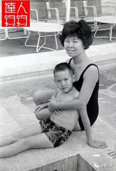 这是费翔母亲和费翔小时候在游泳池边嬉戏的照片