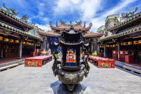 主殿与后殿则由护室围出后埕,两侧护室再以过水廊与主殿相接,呈现台湾中型庙宇典型的格局