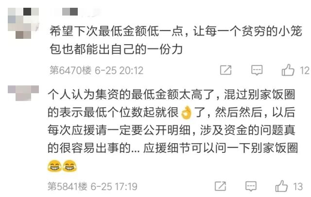 最低应援金额是41.6元,有粉丝觉得高了……