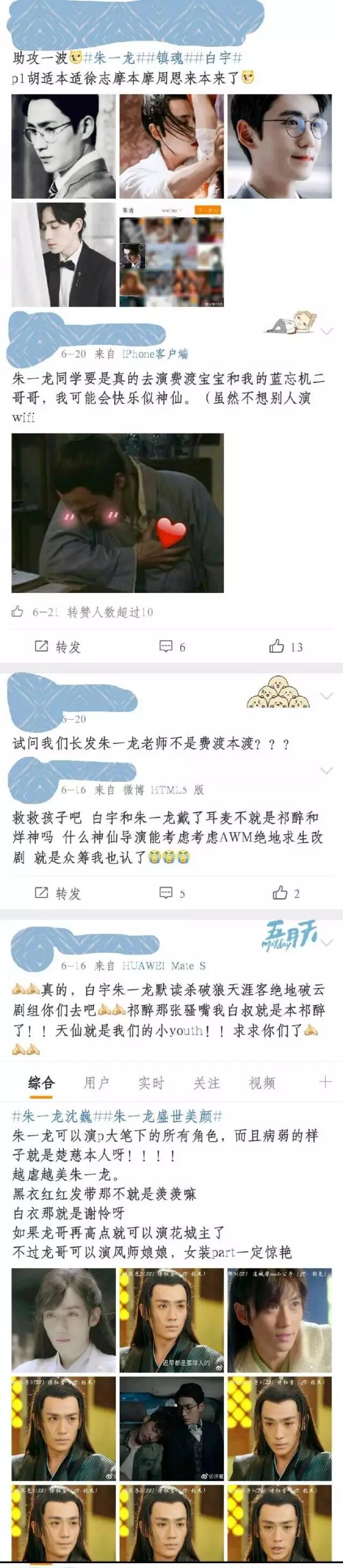 粉丝觉得朱一龙适合各种美男子的形象,提到了不少名人,或是小说里的人物。