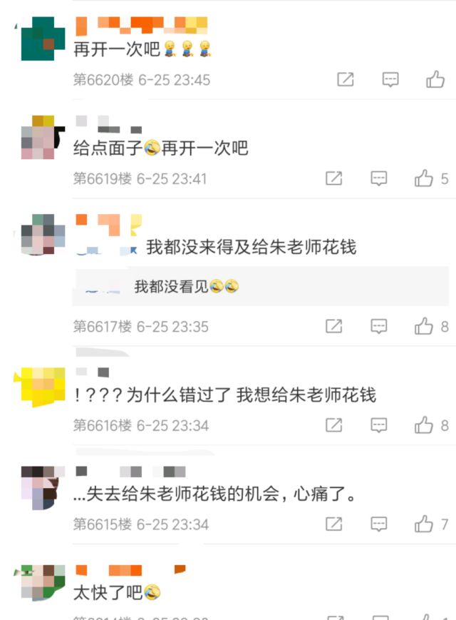 在该微博下,不少粉丝哀嚎,只是上个课、开个会、睡个觉的时间……就错过了集资。