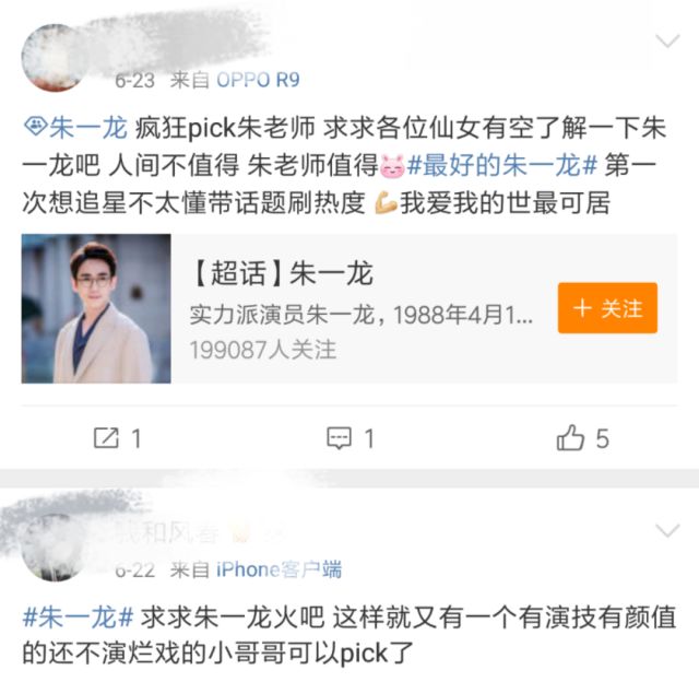之前也发过微博,粉丝们喜欢用#最好的朱一龙#这个话题,而且常在这个话题里提到别的艺人,后援会希望大家不要使用这个话题。