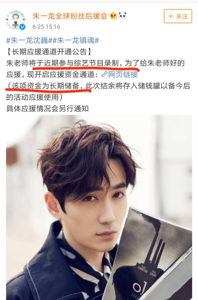 “朱一龙后援会集资”这件事还上了热搜↓