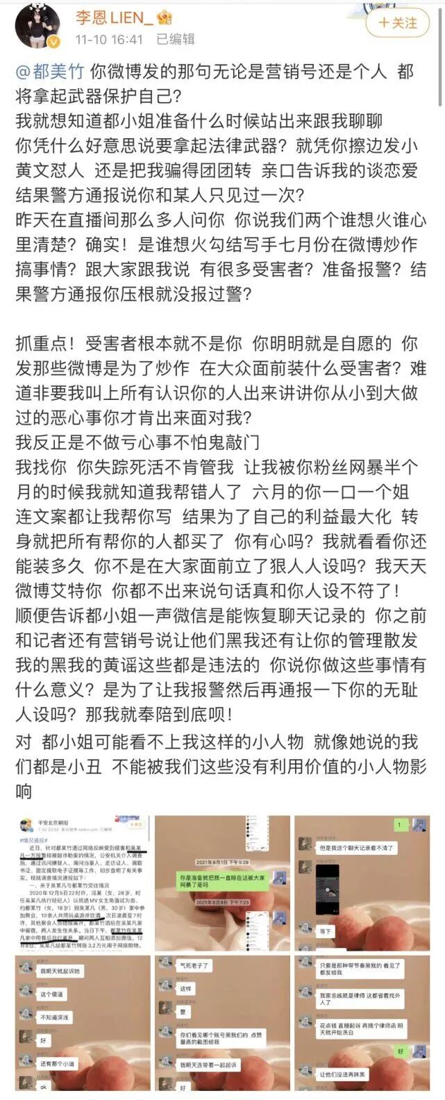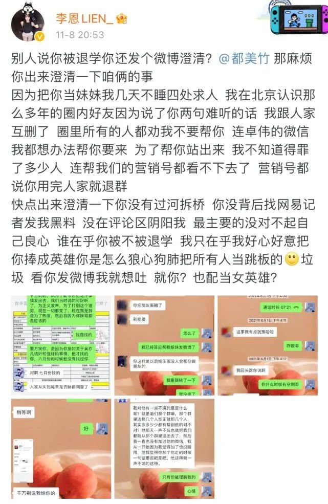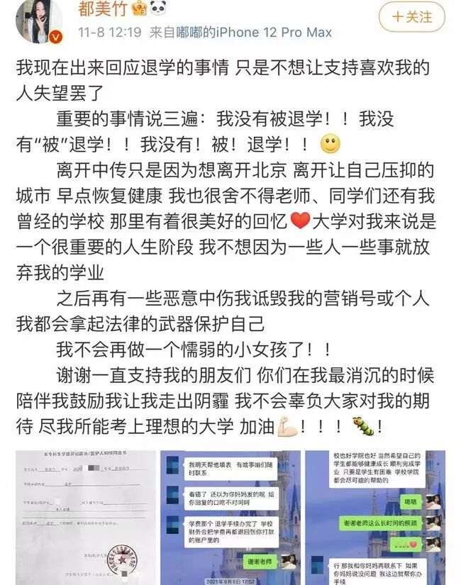 吴亦凡被抓三个月后,都美竹被好姐妹手撕?称其根本就不是受害者! 学习财商思维 内地男星 2021-11-21 19:05:37 600 创作不易,用心坚持,欢迎请BaGua喝几杯爱心咖啡!打赏并支持本文 打赏并删除本文 随着吴某凡被抓之后,都美竹这个名字就逐渐消失在吃瓜群众视线里。不过近日,都美竹的瓜似乎又多了起来。先是网传都美竹被中传退学,中传的名字大家都如雷贯耳了,被名校退学不少网友都纷纷为都美竹感到可惜。大概是“被退学”的舆论发酵太快,都美竹在社交平台发文澄清自己离开中传是自愿主动的,并非是被退学。原因是想离开北京这座让她压抑的城市,她还称自己会去复读,考上理想的大学。为了让大家相信她没有被开除,她还晒出了学籍异动同意书和自己跟老师的聊天记录,不过眼尖的网友却从盖章中发现“高等职业技术学院”几个字。于是有网友质疑她中传高职跟中传是一个学校吗?都美竹直言是一个学校,都在一个教学楼上课呢。然而不少网友并不买账,本科和专科能一样吗?挂名而已。不过都美竹这一波澄清操作下来,人设又立住了,她就是吴某事情中的受害者,凭借自己的努力把渣男送进了监狱,自己的抑郁也慢慢好起来,生活步入正轨,一个正能量的善良女孩。虽然遭受到不少质疑,但大部分网友还是站在她这边的。除了学历被质疑之外,都美竹在上个月底的万圣节时候,被网友扒出参加了王思聪的万圣节派对。据悉,都美竹和王思聪十月初就互相关注了社交帐号,所以也引来不少争议,被网友吐槽卖惨,身体不好却和王思聪过万圣节。曾经在吴某凡事件中支持都美竹的李恩也站出来开撕都美竹,指责都美竹过河拆桥,任由自己被网暴。说起来李恩是最初曝光都美竹与吴某恋情的人,从一开始她就自称是都美竹的姐姐。根据李恩的叙述,自己为了姐妹情谊,几天不睡为都美竹找了各种资源,甚至要到了卓伟的联系方式,后来却被都美竹暗地找记者发黑料。今年7月份,都美竹将事件闹大后,都美竹受到的质疑声音也越来越多,这个时候李恩一如既往以姐姐的口吻帮她发声,而都美竹却对媒体记者说李恩并是不是亲姐姐,暗指李恩发声是为了蹭热度,因此李恩直到现在还在遭受网络暴力。伴随着吴某入狱,都美竹被捧成了爆锤渣男的英雄,而从李恩发出的聊天记录来看,她曾要求都美竹为其澄清,然而并没有得到都美竹的回应。李恩还直言都美竹在吴某凡事件当中根本不是受害者,一直都是自己自愿的,却联合写手在网上炒作,把自己包装成受害者,她自称要报警,但从头到尾她都没有报警,是警察找的她。面对李恩的持续开撕,有网友觉得都美竹确实卸磨杀驴了,也有网友质疑李恩从一开始就是打着都美竹好姐妹的名义撕自己姐妹,这都撕到吴某凡入狱了还没完没了。不过话说回来,都美竹为了红也好,为了正义也好,如果没有她,吴某确实得不到应有的惩罚,客观来讲都美竹做了一件正确的事情,但都美竹具体是个什么样的人,还是等待时间来告诉大家答案吧! 创作不易,用心坚持,欢迎请BaGua喝几杯爱心咖啡!打赏并支持本文 打赏并删除本文 感谢您的支持鼓励,我会继续努力的!文章地址:用户邮箱:打赏金额:USDT 请输入数字点击”去打赏“,即可进行打赏支持本文章哦 吴亦凡 About the Author 学习财商思维 功能介绍:儿童财商教育专家教你学习怎么培养孩子财商,让孩子学会管理金钱,不被金钱所控 Related Posts 吴亦凡被抓三个月后,都美竹被好姐妹手撕?称其根本就不是受害者! 2021-11-21 19:05:37 发表评论