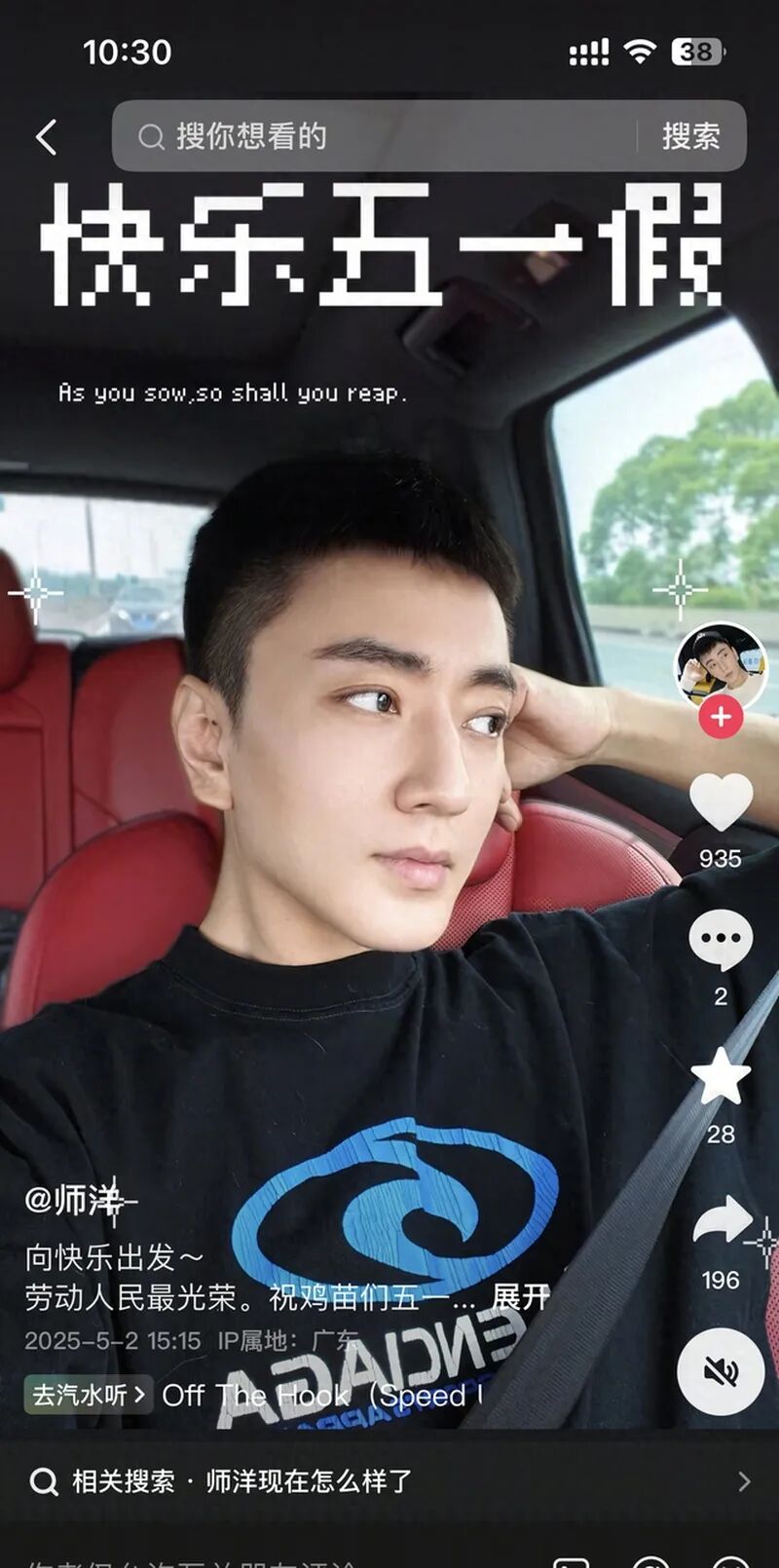有细心的网友发现,师洋最后一条短视频更新停留在2025年5月2日。