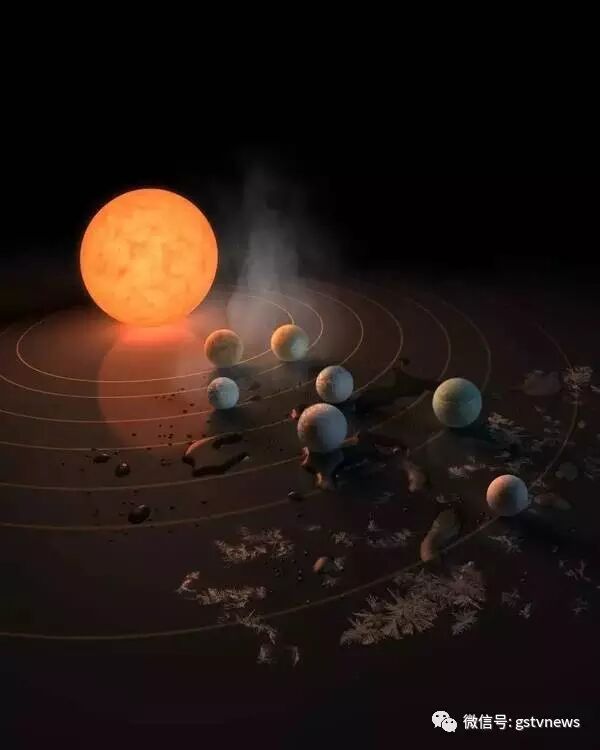 ▶据美国宇航局网站消息,在距离地球40光年的单颗恒星周围发现7颗地球大小的类地行星,其中3颗确定位于宜居带内,或许它们都有水存在。