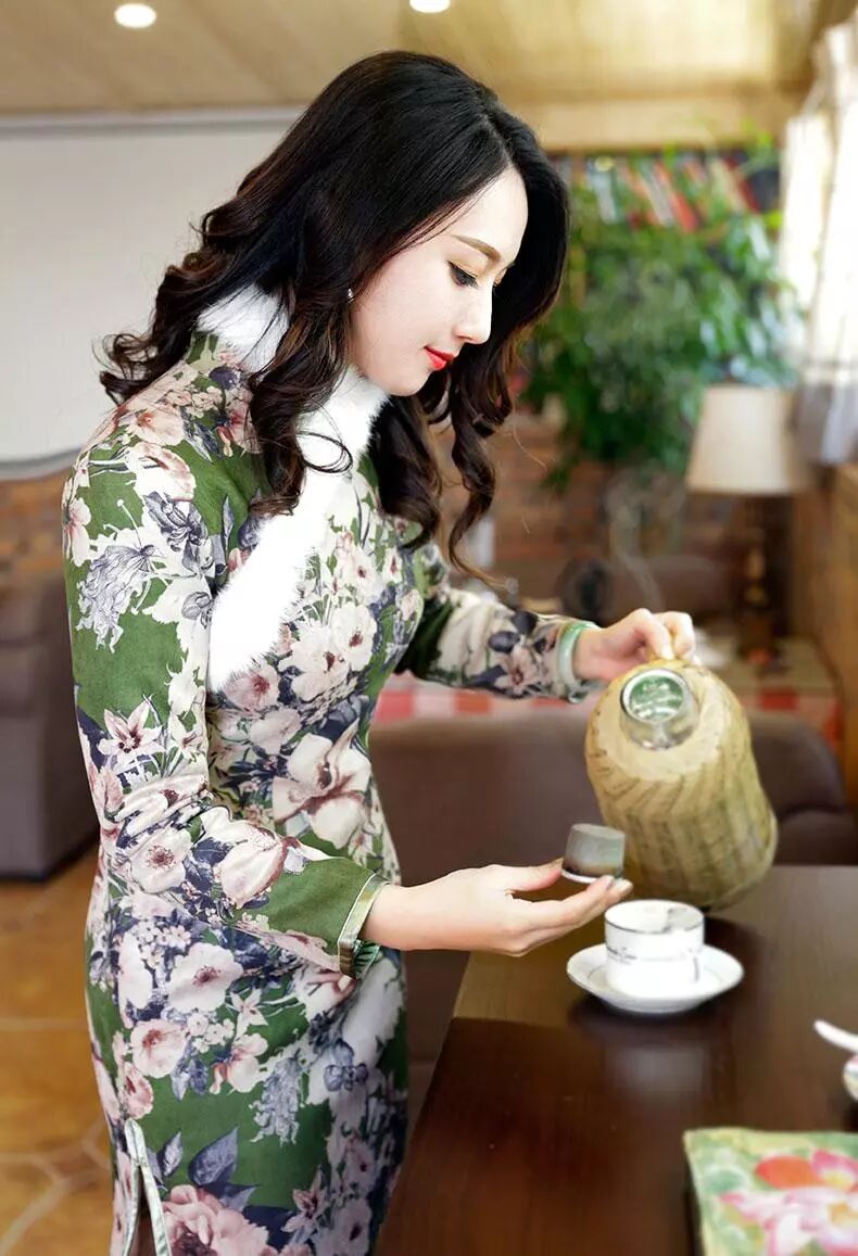 冬天穿一件镶毛边夹棉旗袍,温暖之时凸显雅致的女人味,