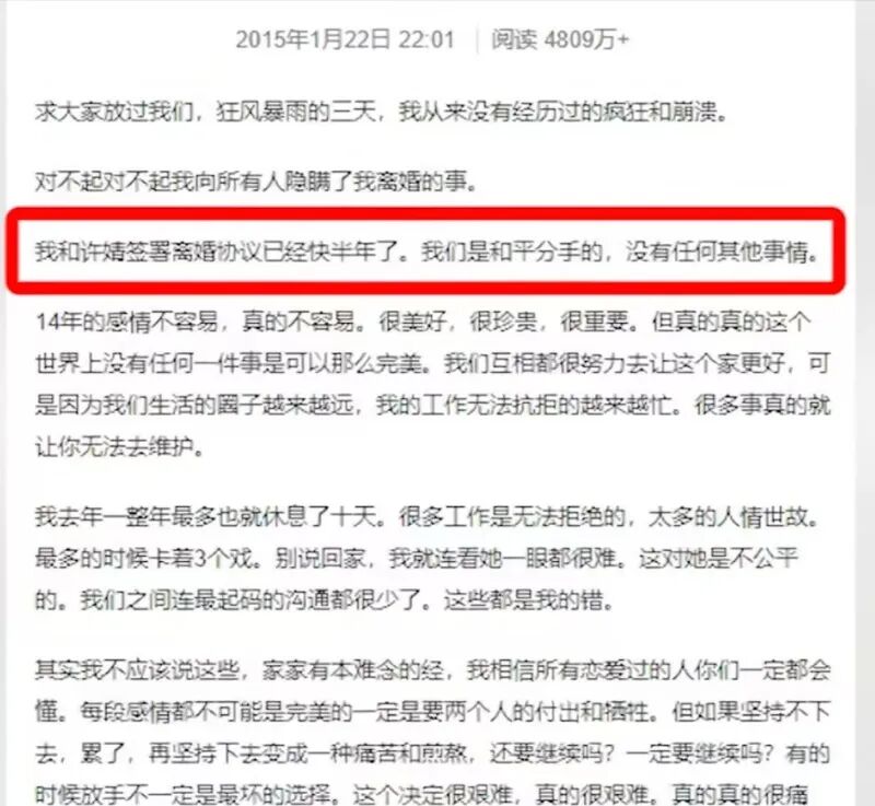随后,陈赫才承认已于2014年和许婧协议离婚。