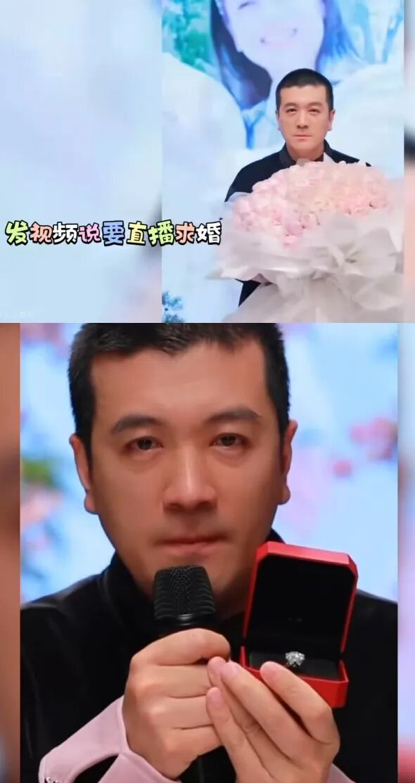 当着所有网友的面向自己的前妻求婚,手捧玫瑰,外加11克拉的大钻戒。