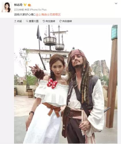 中新网6月15日电 中国内地首个、世界第六个迪士尼主题乐园即将开园。今日,女星林志玲在迪士尼游玩。她先是上传一个视频,说自己超开心,并说迪士尼是最幸福的地方。她还分别上传了和白雪公主、加勒比海盗、陈柏霖的合影。