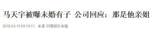 前两天一向以爆料精准出名的全明星探一不小心闹了个乌龙,错把马天宇的亲二姐当成了马天宇的隐婚恋人,还取了个耸人听闻的标题。