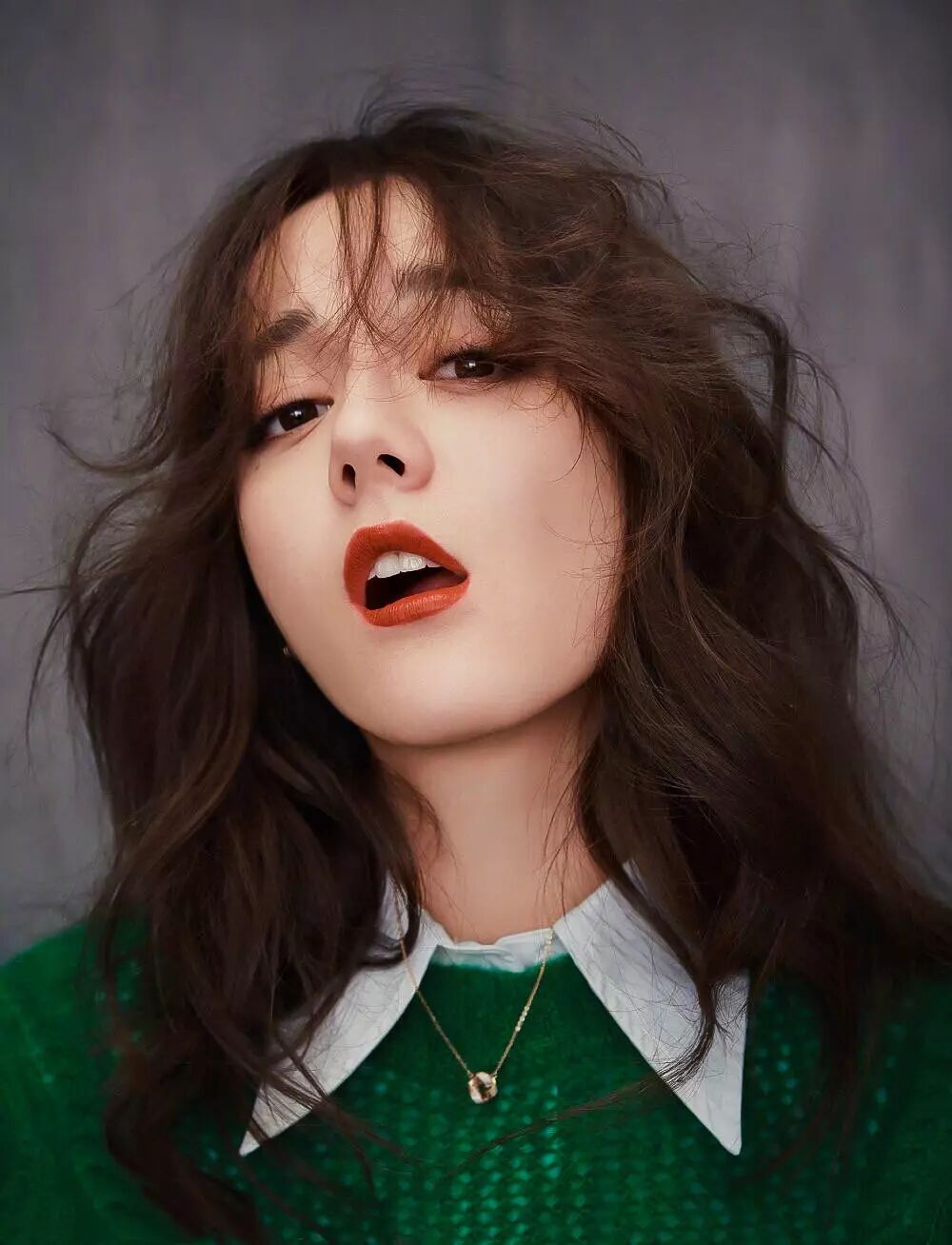 今年很流行的羊毛卷在她脸上毫无违和感。