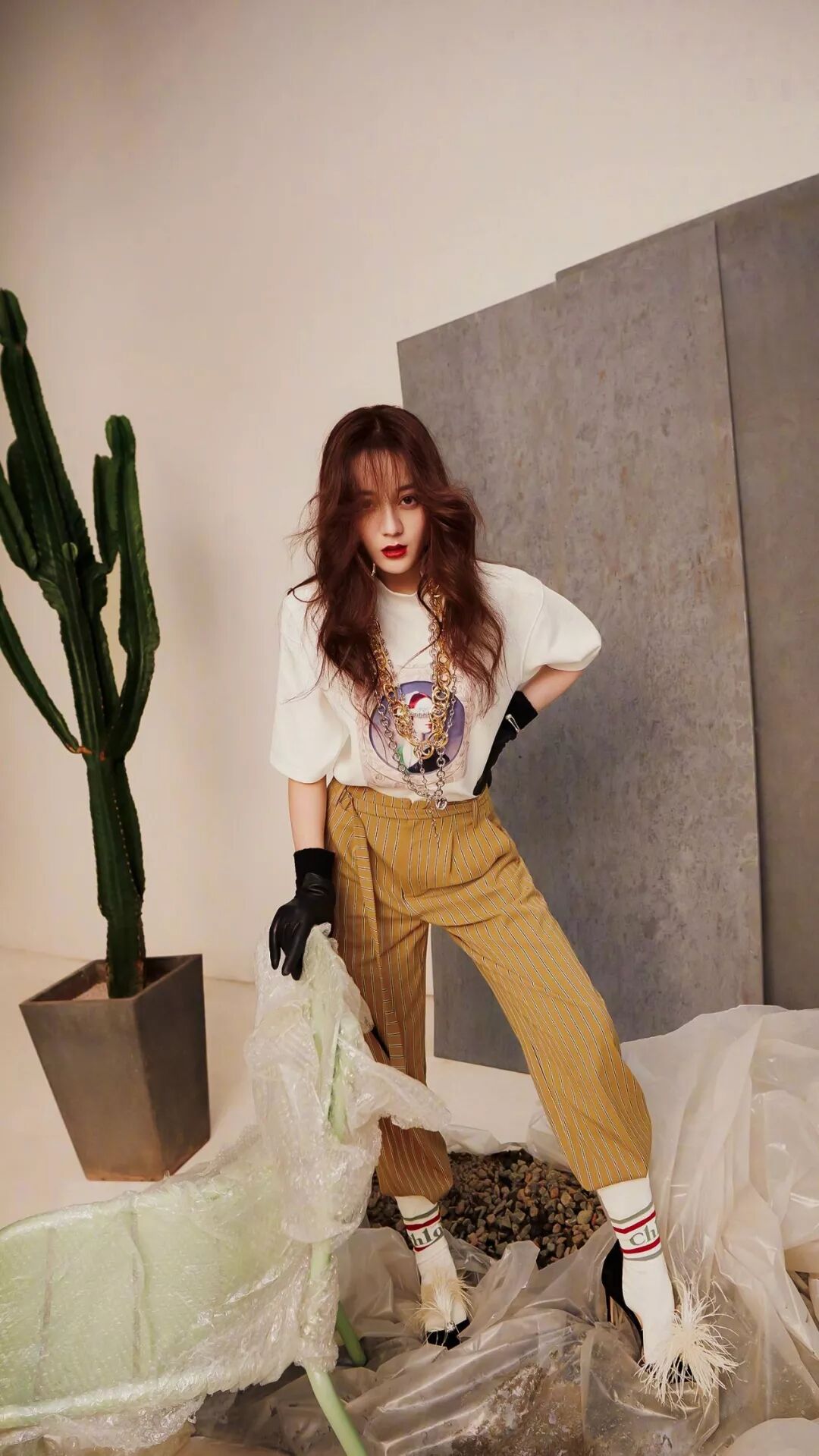 《时装 L'OFFICIEL》杂志刚刚1月份的封面也是她,换了一种酷酷的风格也挺让人眼前一亮的。